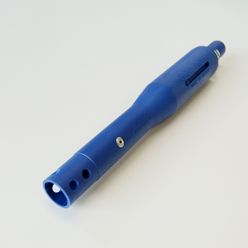 モップフレームとハンドルの間に取り付けます。エルゴベンドを取り付けることによってハンドルをほぼ直角に曲げることができるので、ソファや椅子、ベッドなど背が低い家具の下もかがまずに掃除することができます。